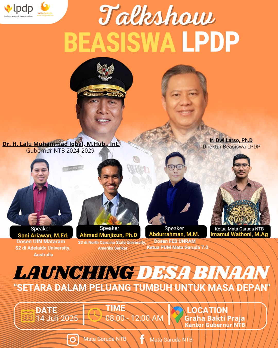 Selain talkshow beasiswa, acara ini juga menandai peluncuran Program Desa Binaan Mata Garuda NTB, sebagai wujud nyata pengabdian alumni LPDP untuk desa-desa di NTB. Program ini bertujuan untuk: