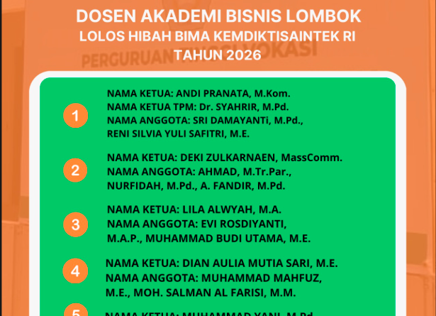 Dosen Akademi Bisnis Lombok Lolos Hibah BIMA 2026 Kemdiktisaintek RI, Bukti Kualitas Riset Kampus NTB